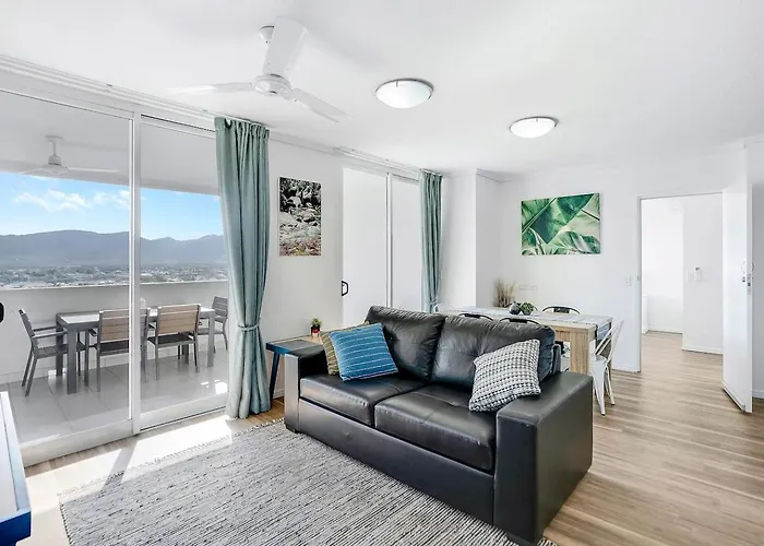 Cairns City Escape - Elevated Modern Haven With Pool, un apartamento de 87 m², está situado a unos 20 minutos a pie del Estadio Rainforest de Cairns, y a 1 km de la Isla Verde.